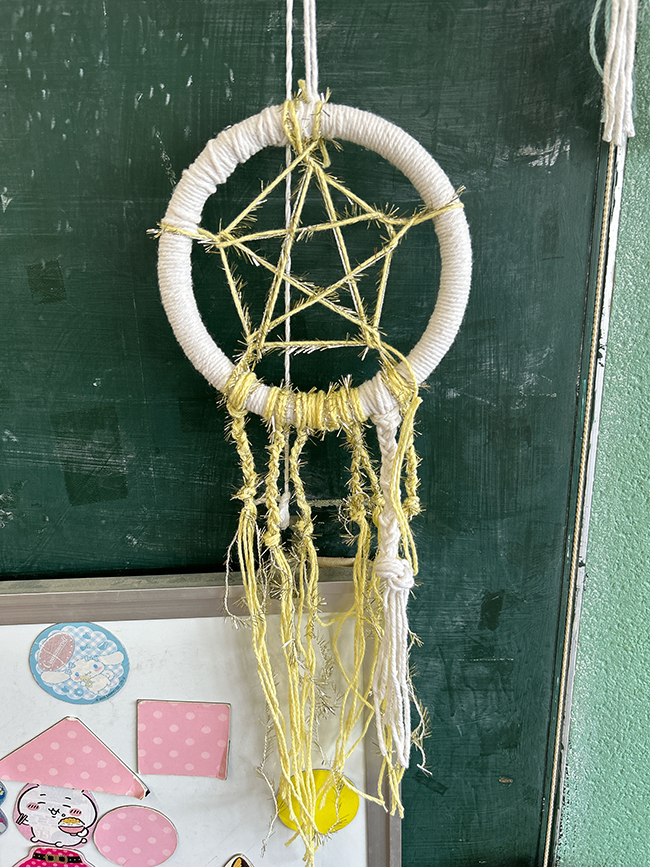 去る5月13日に常任会にて、一足お先に「ドリームキャッチャー」作りにチャレンジしてみました!! まずは、はさみ、枠、白い毛糸を用意し、好きなカラー毛糸を1種類選び、準備完了!
