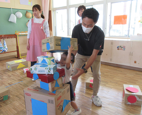 6月16日の父の日を前に、幼稚園で父親参観会が行われました。