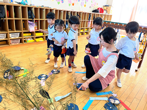 今年は日曜日なので、幼稚園では5日に七夕まつりを行いました。