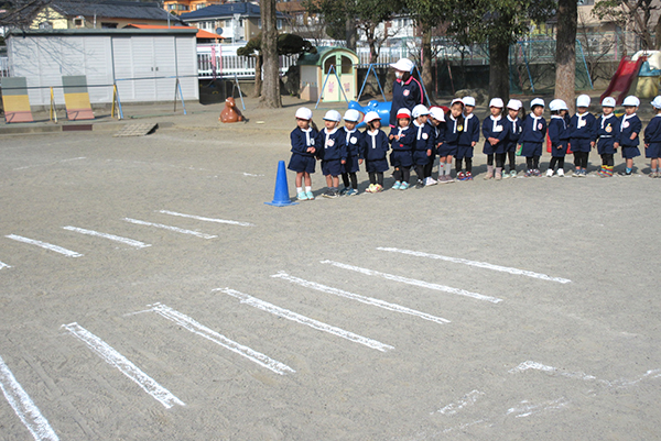 クラス単位で曲に合わせて園庭内をグルグルと走ります。